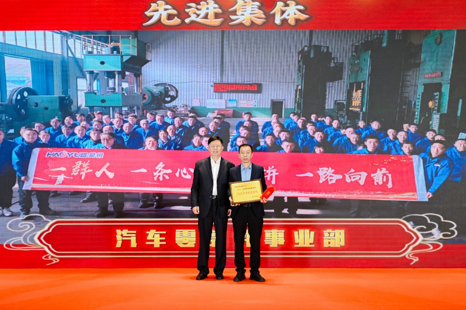 集团总经理赵阳先生在会上宣读 2025年度先进集体及先进个人表彰决定,致敬每一位奋斗者,更激励全员以先进为标杆,主动对标看齐,勇于担当作为,凝聚发展合力。立足年度发展成果,总经理回顾道:过去一年,昊悦团队秉持拼搏奋进精神,在激烈市场竞争中稳健立足,不仅实现了转方式、调结构的多方面转型突破,更在高精尖领域完成关键部署,展现出蓬勃向上的全新活力。针对2026年工作,明确提出核心部署,将聚焦新能源、橡胶机械等领域,严格落实董事长工作要求,以实干笃行续写集团发展辉煌。