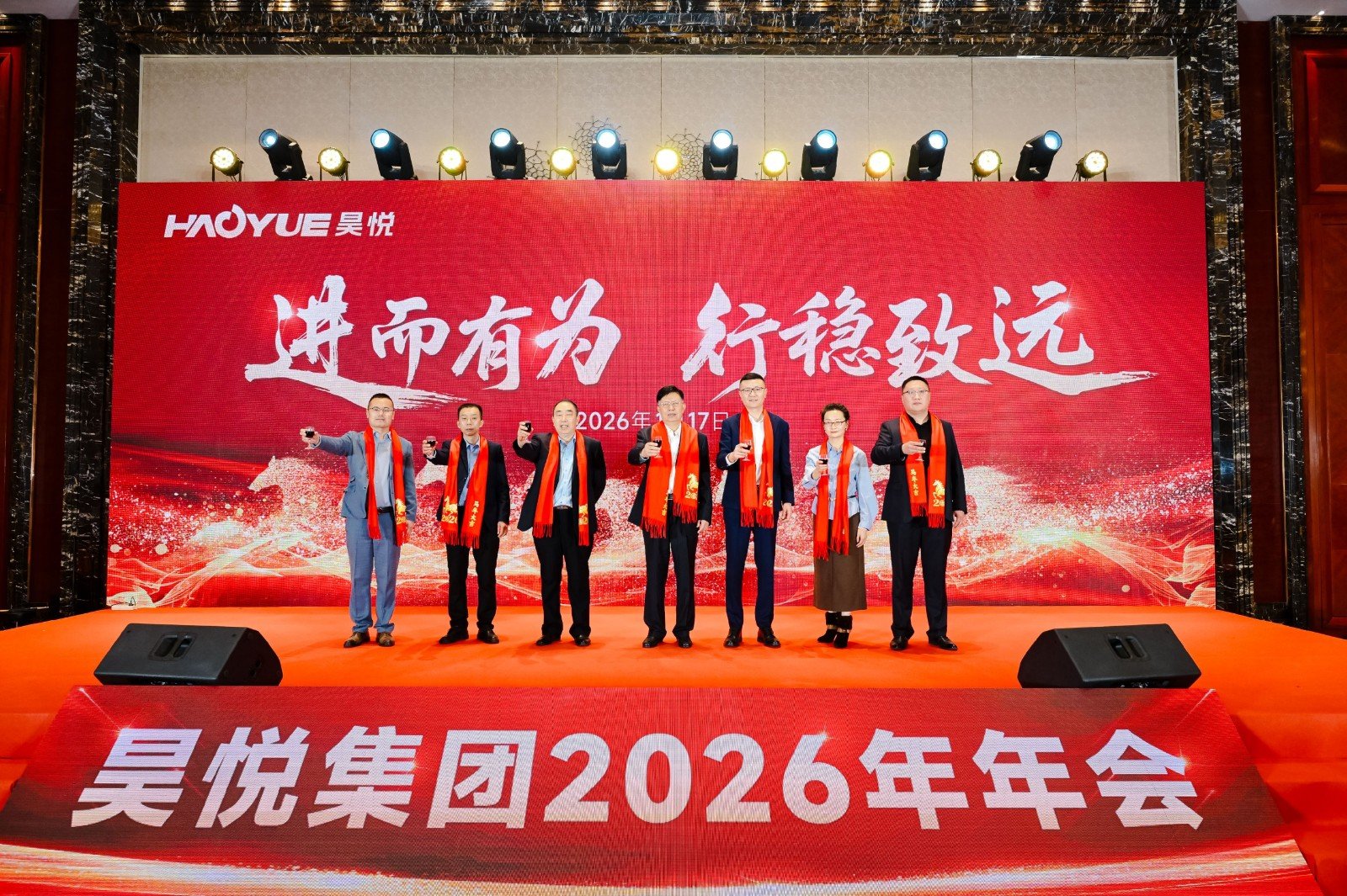 这场满载欢乐与荣耀的年度盛会,既是对2025年并肩奋斗的圆满总结,更是2026年逐梦前行的崭新起点。让我们带着新一年的热忱与期许,凝心聚力、锐意进取,以实干践行初心,以拼搏书写华章,在新的征程上乘风破浪、再创佳绩,共同开启昊悦集团高质量发展的崭新篇章!