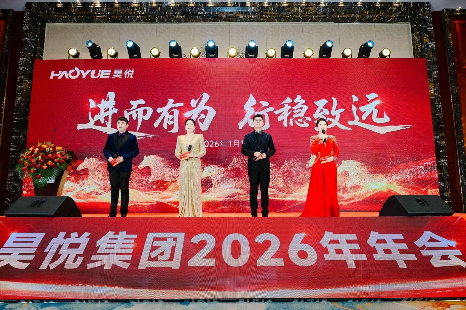 灵蛇辞旧岁,骏马启新程。2026 年1月17日,青岛昊悦集团 2025年年终总结大会暨2026年新年年会在鑫江温德姆酒店隆重举行。本次大会以“进而有为,行稳致远”为核心主题,凝聚全员共识、共绘发展蓝图,为过去一年的拼搏喝彩,为新一年的征程蓄力。